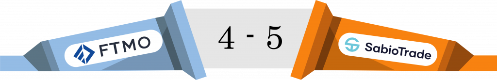 👉 Sur ce critère, c’est une égalité. FTMO se distingue par la diversité de ses plateformes, tandis que SabioTrade brille par la richesse de son catalogue d’actifs. FTMO prend l’avantage sur le plan des plateformes grâce à sa variété d’options, MetaTrader 4, MetaTrader 5, cTrader, et DXtrade, offrant une flexibilité inégalée pour les traders qui ont des préférences spécifiques en matière d’environnement de trading.En revanche, SabioTrade se démarque avec plus de 250 instruments, y compris des ETF, ce qui constitue un atout majeur pour ceux qui recherchent une grande diversité d’actifs tout en profitant d’une plateforme simple et épurée.