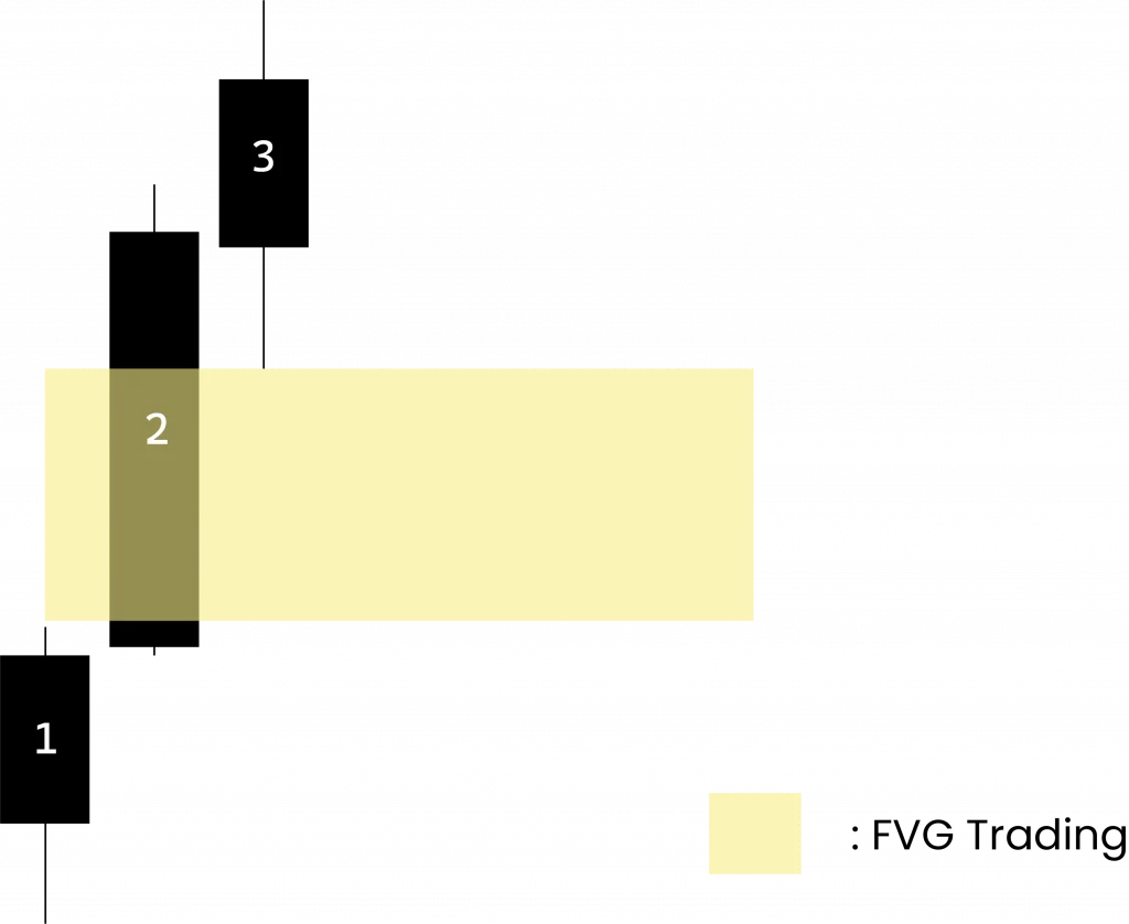 Pour identifier un FVG, vous devez analyser une séquence de trois bougies consécutives :